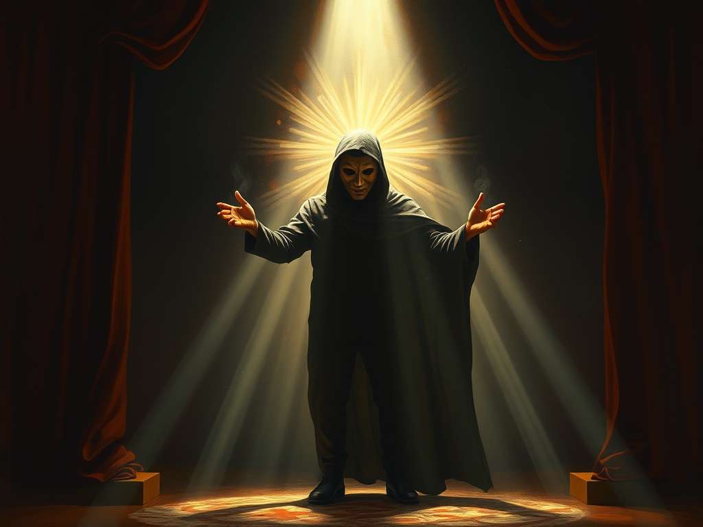 Now tonight, let us start with a story and show you how this works in our world. First of all, an actor is defined in your dictionary…the word hypocrite means “actor.” The word hypocrite is actor. A hypocrite is one that pretends to be other than he is to achieve his own personal end. That’s the hypocrite and that is an actor. I tell you, Jesus Christ is the only actor. Now is he a hypocrite? Yes, the Bible teaches that. “He was in the form of God…and he emptied himself, and took upon himself the form of a slave, and was born of woman and born in the likeness of man” (Phil.2:6-8). Here is God emptying himself and becoming man. A great actor emptying himself and playing… in Tobacco Road. You go to a picture, you go to a show, and here is a great actor, say a Burton, and he doesn’t play Burton, he steps upon the screen and he is Becket. But he doesn’t quite play it to the point of losing the sense of being Burton. When Jesus Christ empties himself and becomes you, he doesn’t pretend that he is you, he actually becomes you, and plays it one hundred percent.
